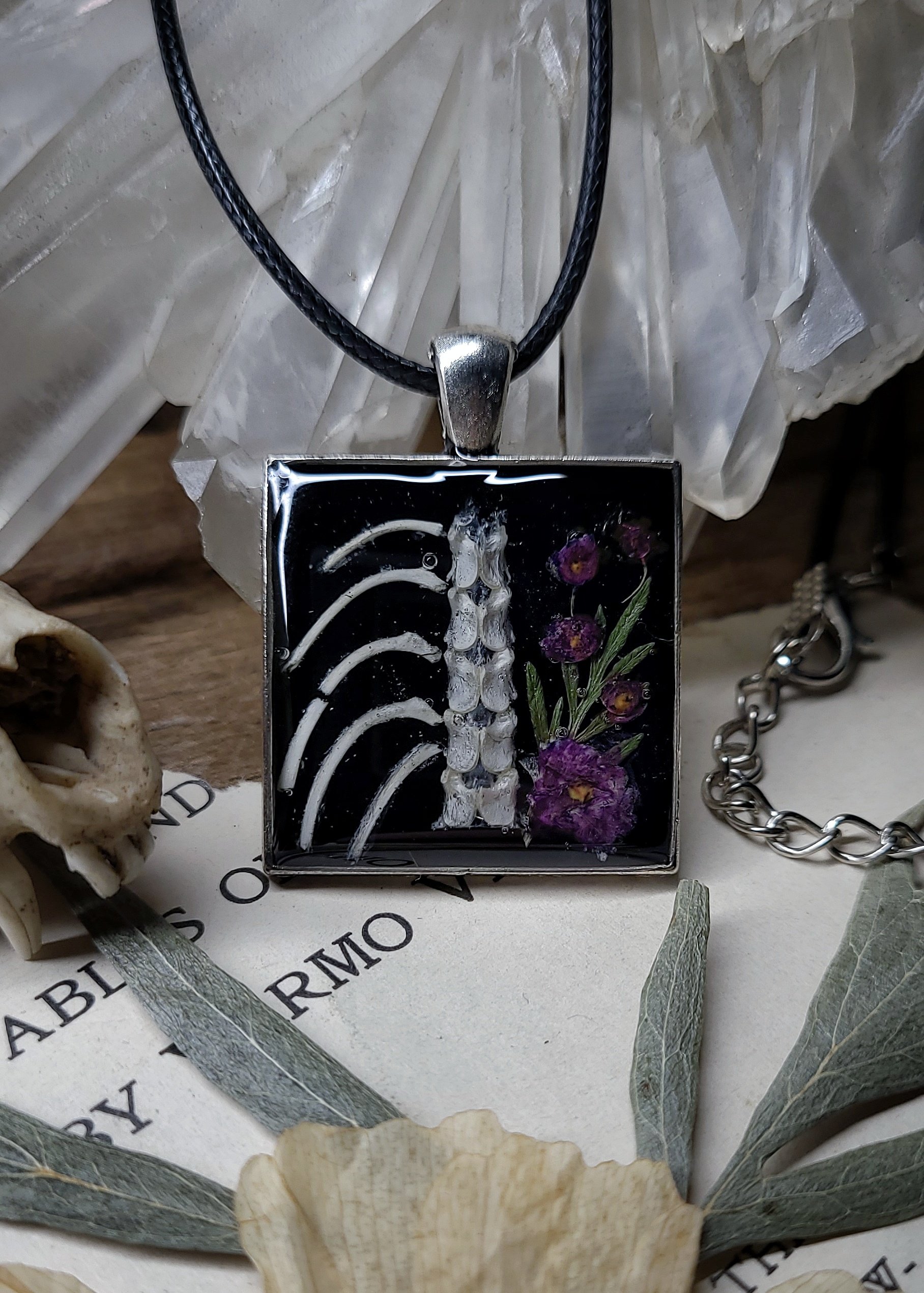 Bunny Ribcage and Floral Pendant