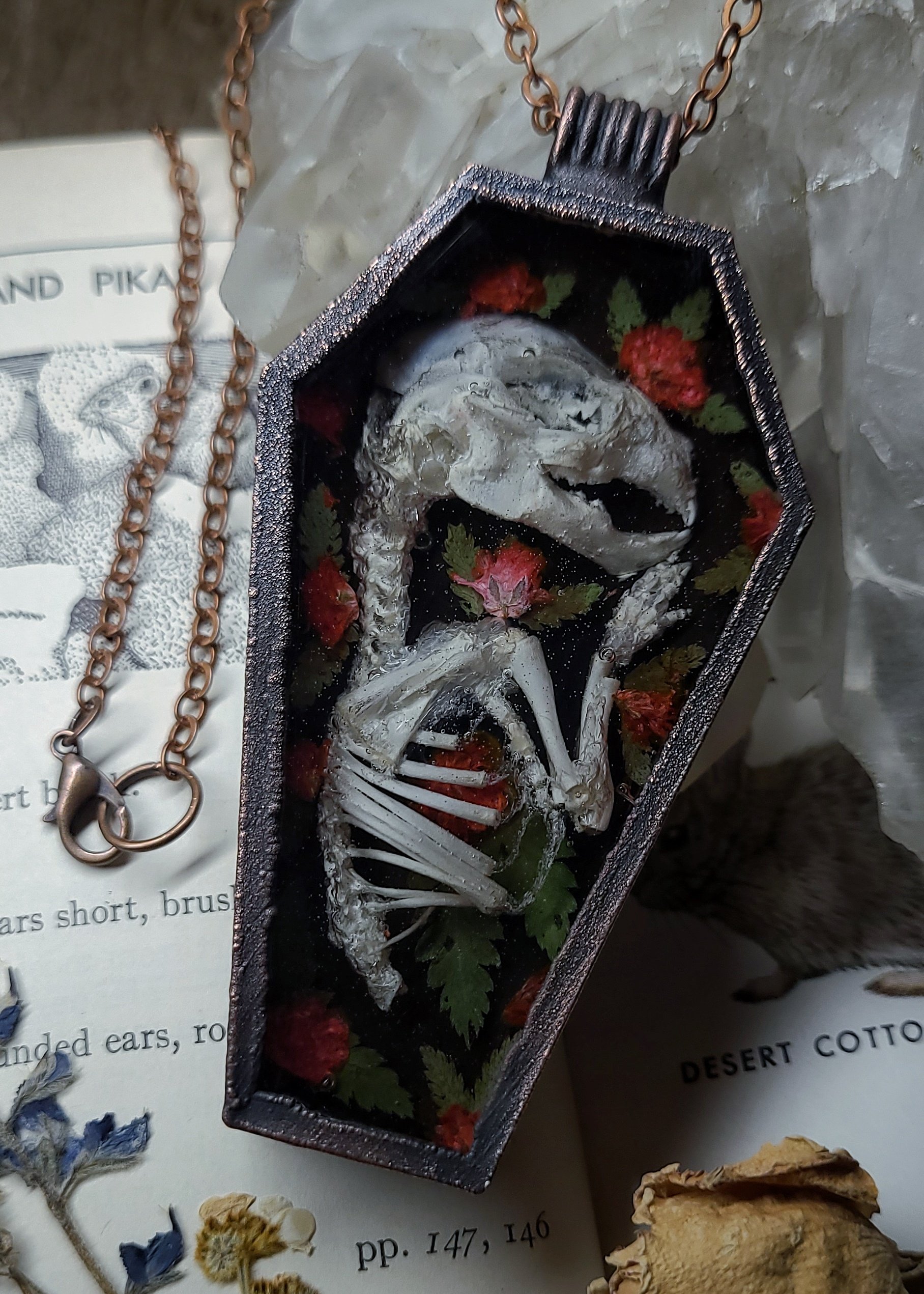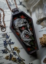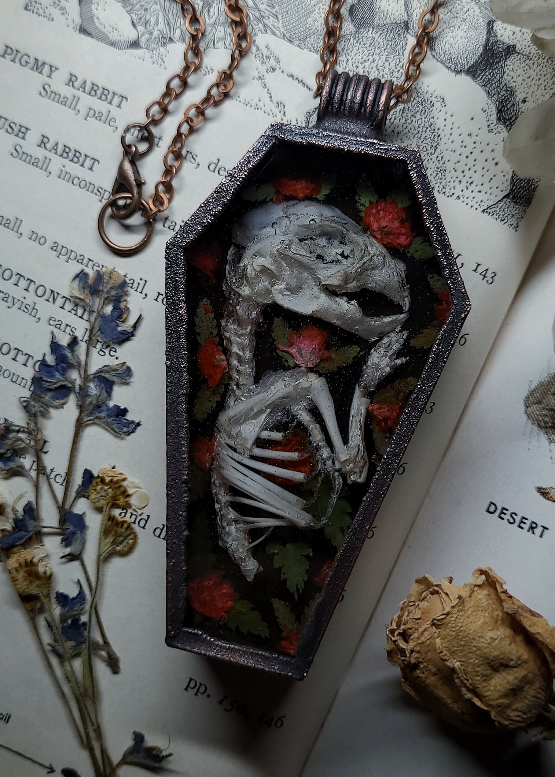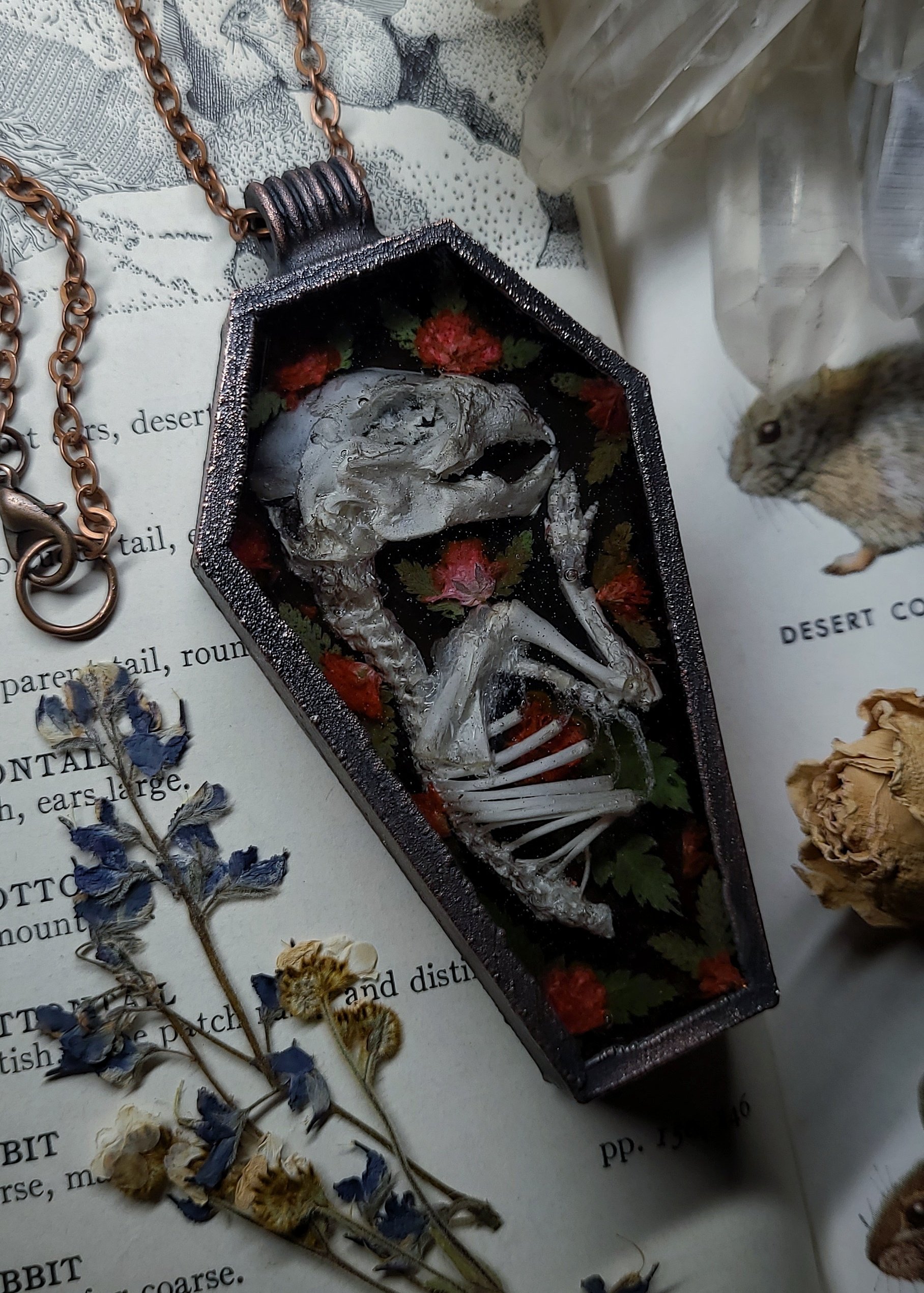 Coffin Amulet - Bunny Skeleton & Red Floral
