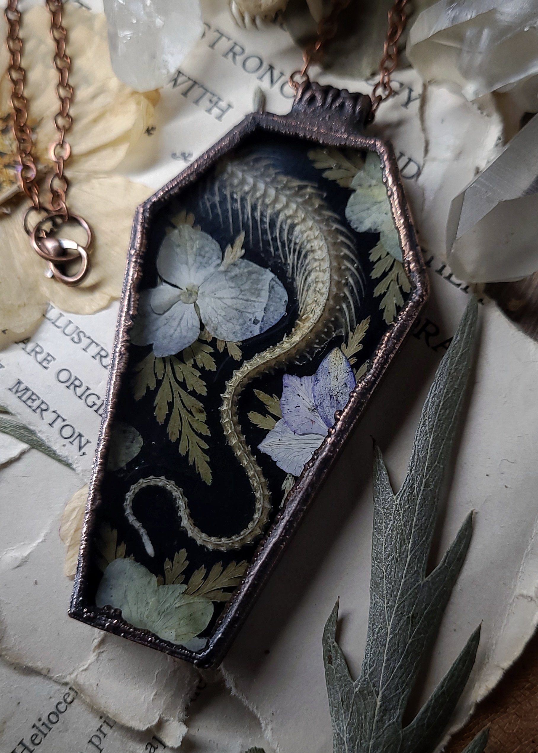 Coffin Amulet - Snake Tail Skeleton and Floral