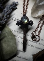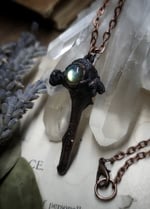 Black Cat Vertebra Bone & Green Labradorite Pendant