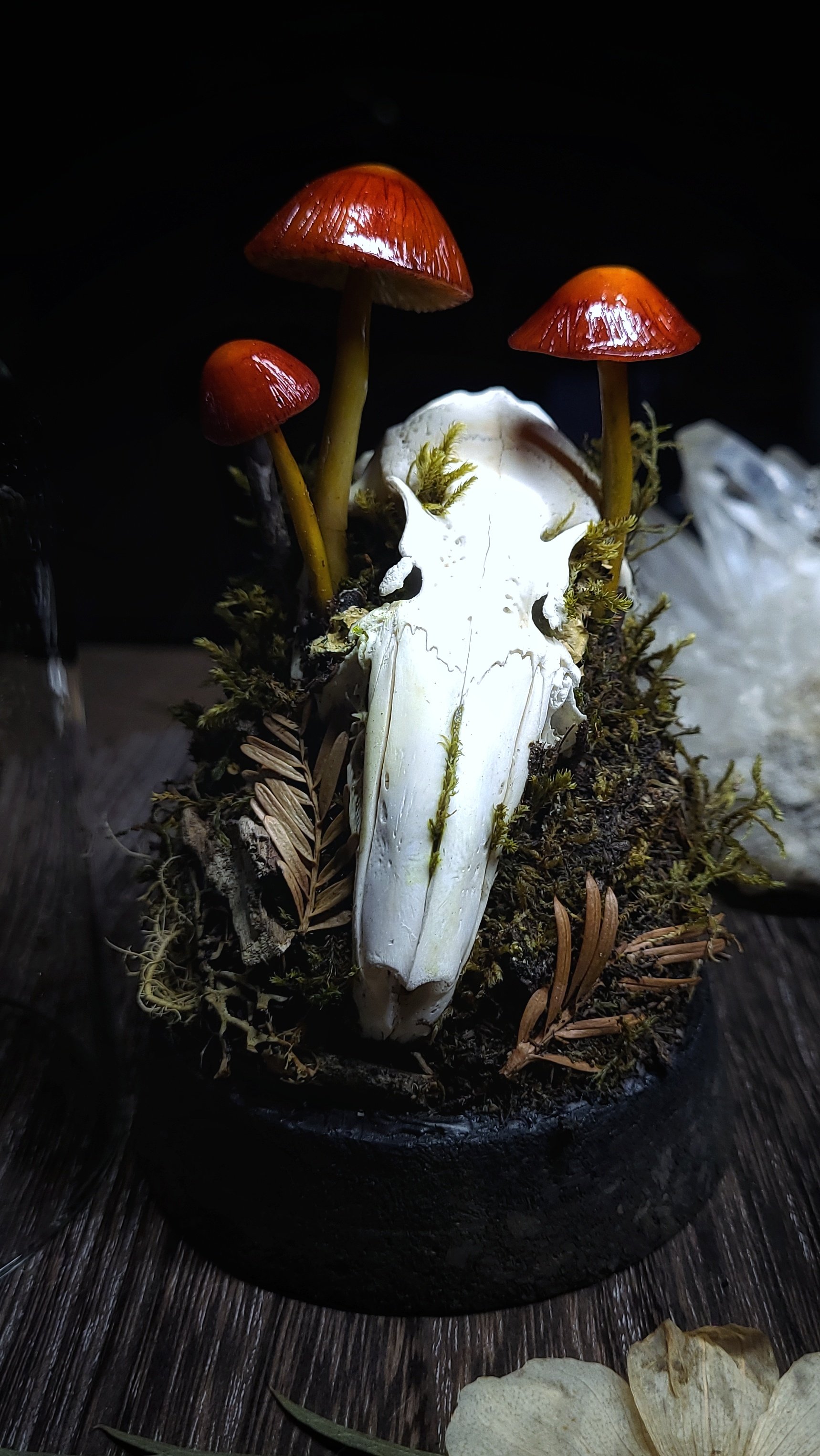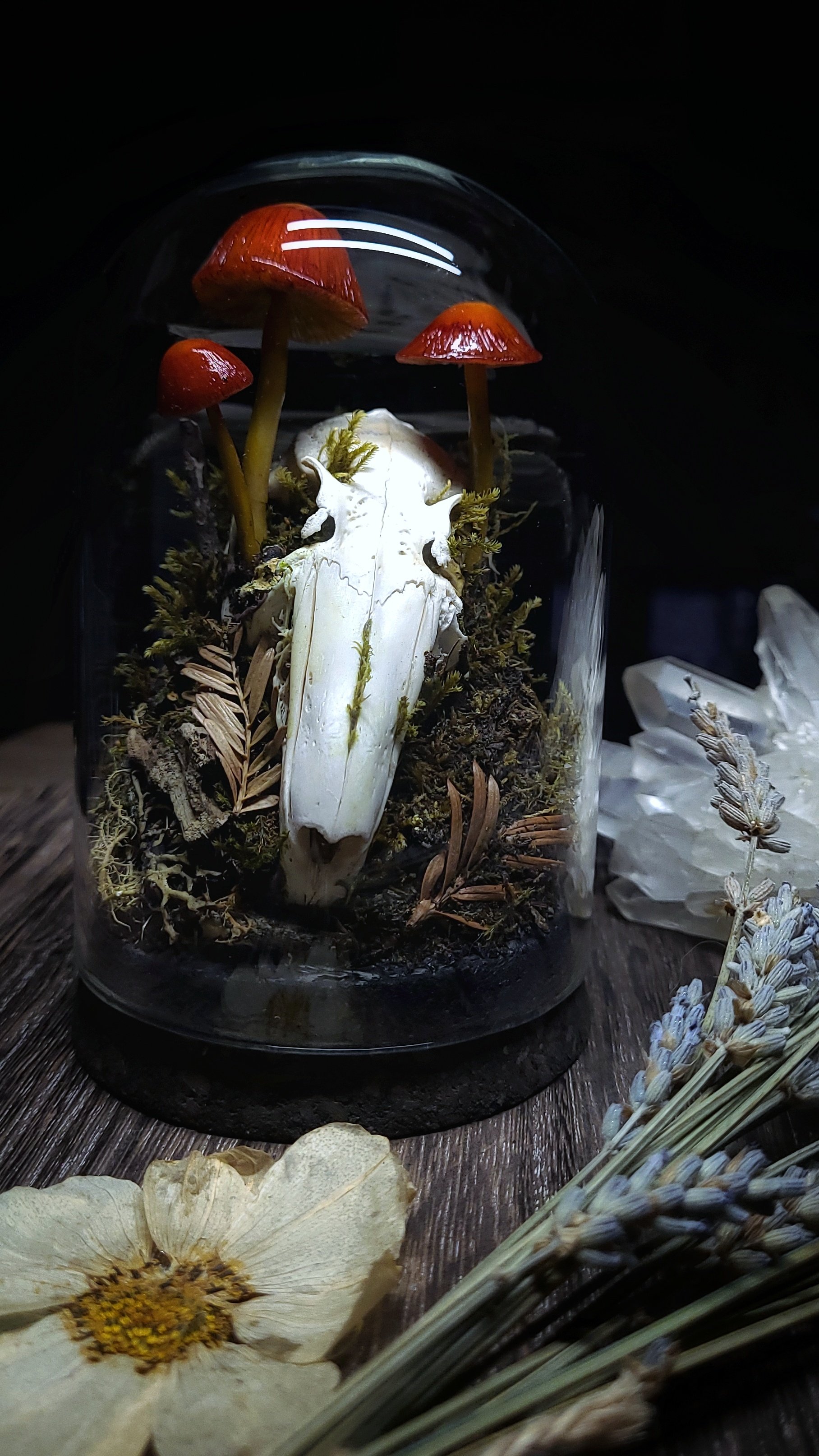 Rabbit Skull and Mushroom Glass Dome