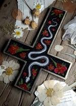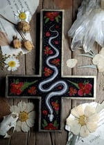 Snake Skeleton and Red Floral Wall Cross