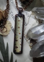 Pendant measures 61 mm x 13 mm and comes on a matching chain necklace in 18 inch length with lobster clasp.